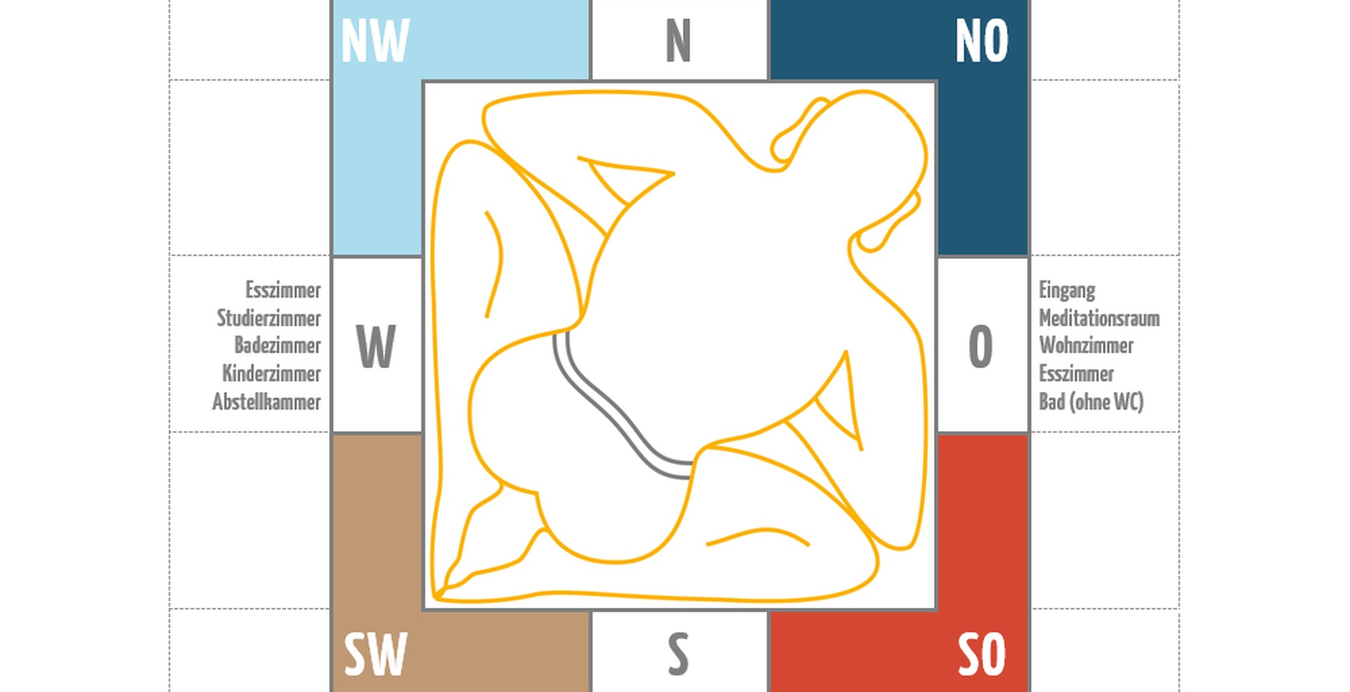 Jede Himmelsrichtung und jeder Planet hat seinen ganz eigenen Charakter, der sich auf die Raumqualität auswirkt. Daher werden auch diese Aspekte bei der Zuordnung der Räume berücksichtigt, denn sie beeinflussen auch uns, wenn wir uns in ihnen aufhalten.
